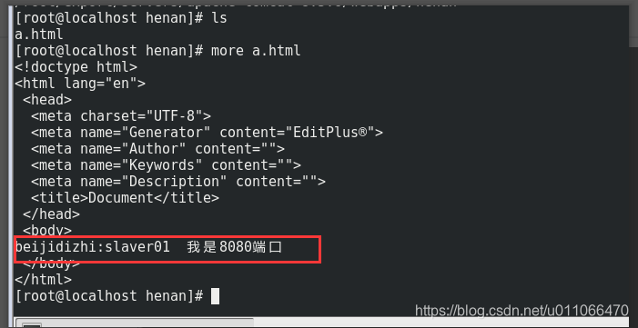 访问页面,通过虚拟ip访问:http://192.168.152.100/henan/a.html
