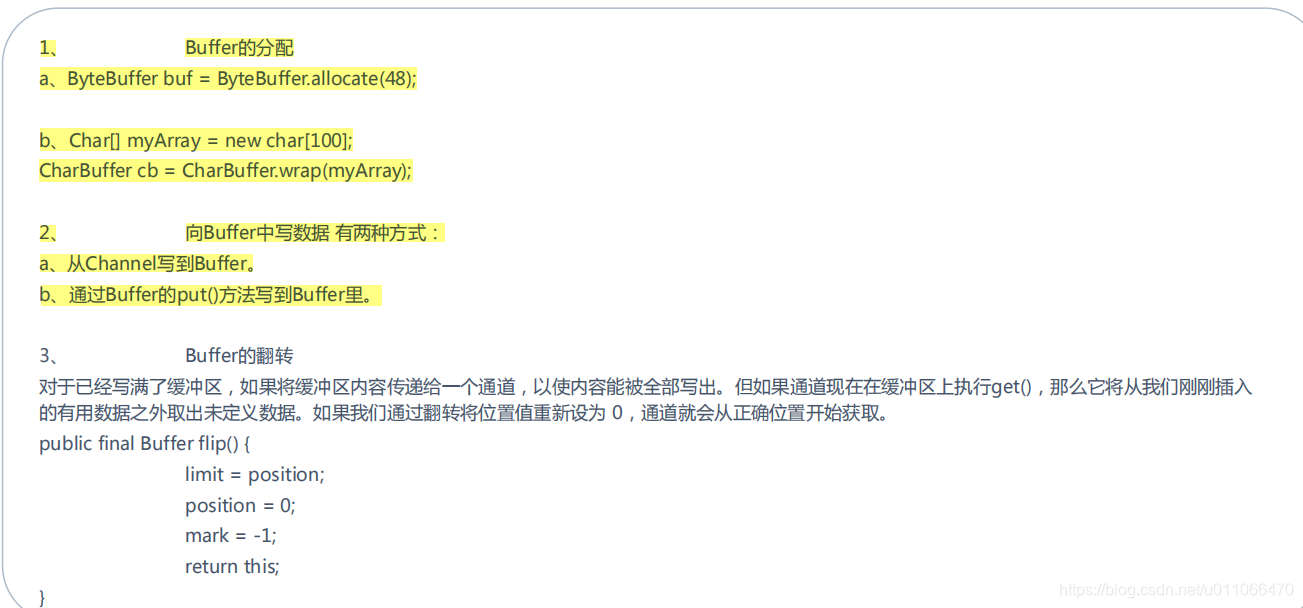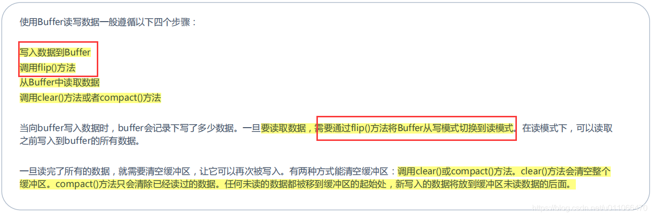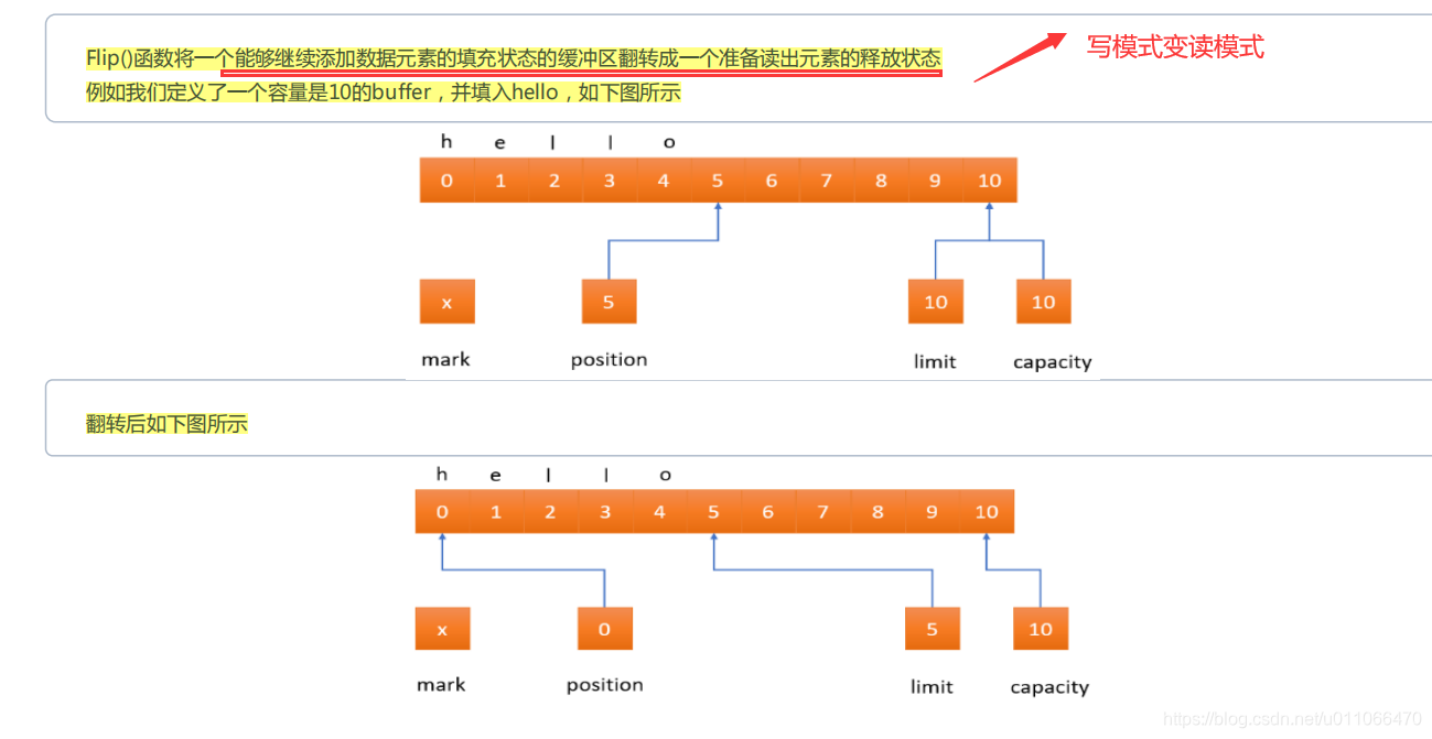 buff.flip(); // flip方法的作用: limit = position, position = 0;