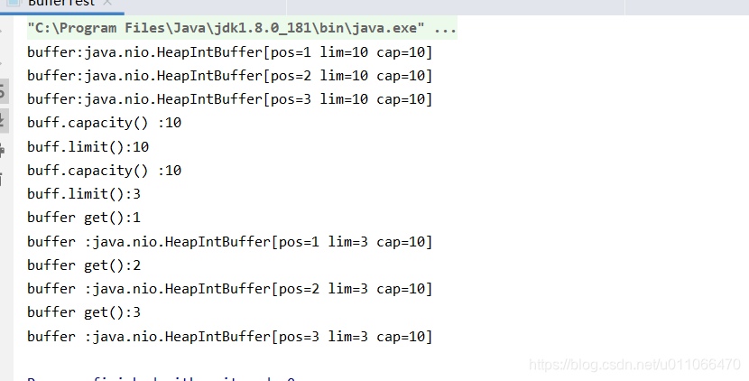 System.out.println("buffer get():" + buff.get()); // position + 1
