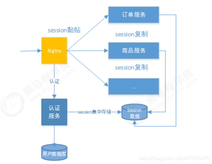 中存储用户身份信息,通 过负载均衡将本地的请求分配到另一个应用服务需要将session