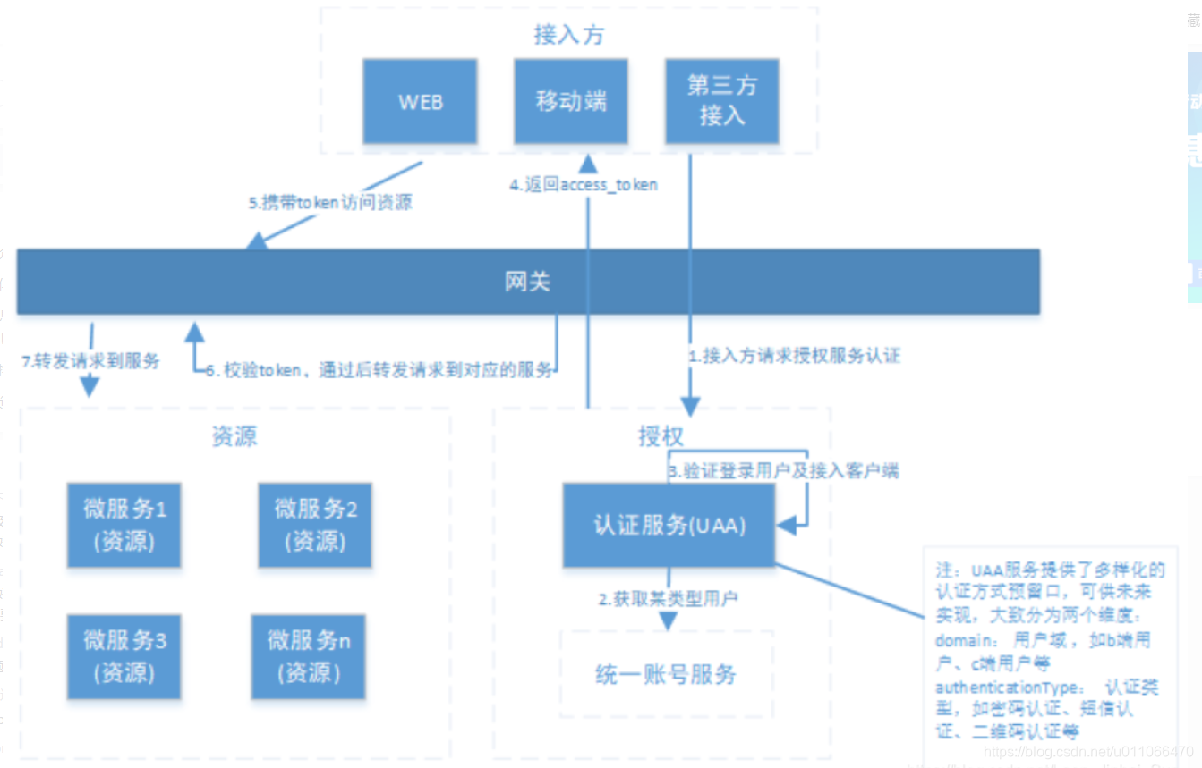 认证服务(UAA)获取接入方权限信息,并验证接入方是否合法
