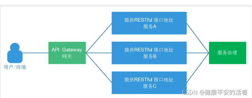 API Gateway网关是一个服务器,是系统的唯一入口。为每个客户端提供一个定制的API。API网关核心是,所 有的客户端和消费端都通过统一的网关接入微服务,在网关层处理所有的非业务功能。如它还可以具有其它职 责,如身份验证、监控、负载均衡、缓存、请求分片与管理、静态响应处理。通常,网关提供RESTful/HTTP的 方式访问服务。而服务端通过服务注册中心进行服务注册和管理。