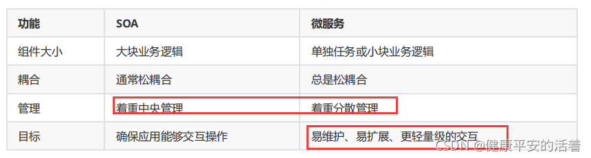 SOA(Service Oriented Architecture)面向服务的架构:它是一种设计方法,其中包含多个服务, 服务之间通过相 互依赖最终提供一系列的功能。一个服务 通常以独立的形式存在与操作系统进程中。各个服务之间 通过网络调用。