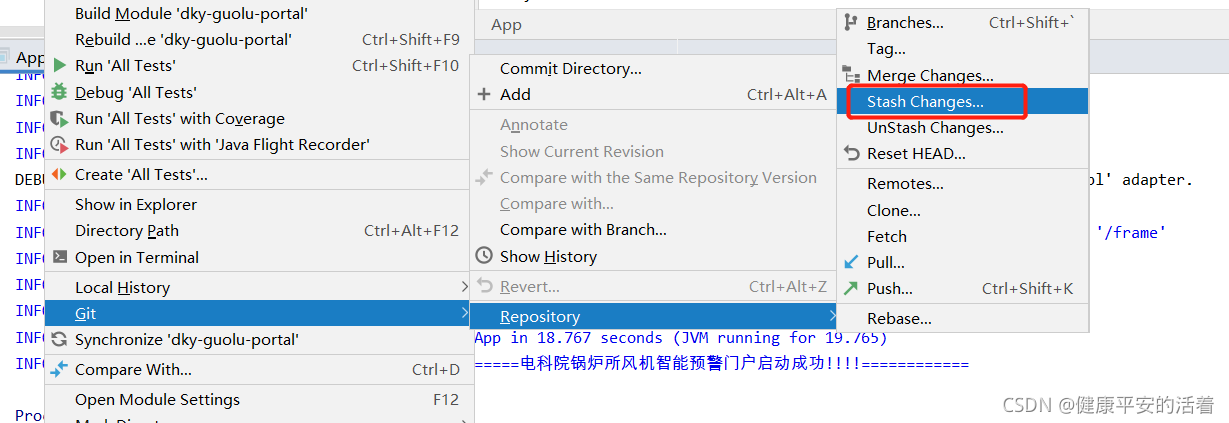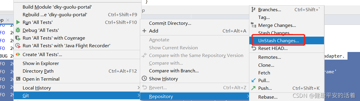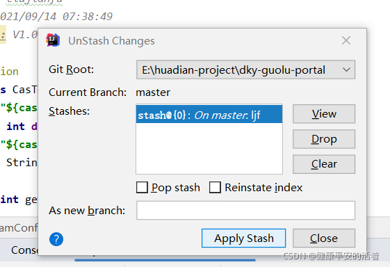 先把 我们的修改 Stash 。存储起来。。你操作完了。发现项目是修改前的了。。