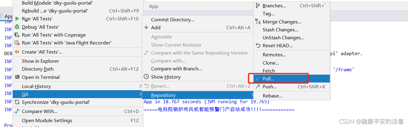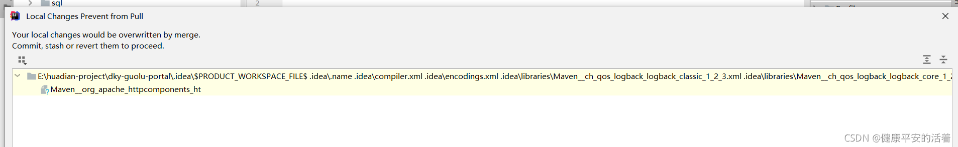在pull,拉取代码的时候,提示如下:如果Pull 成功会把我修改的代码覆盖。