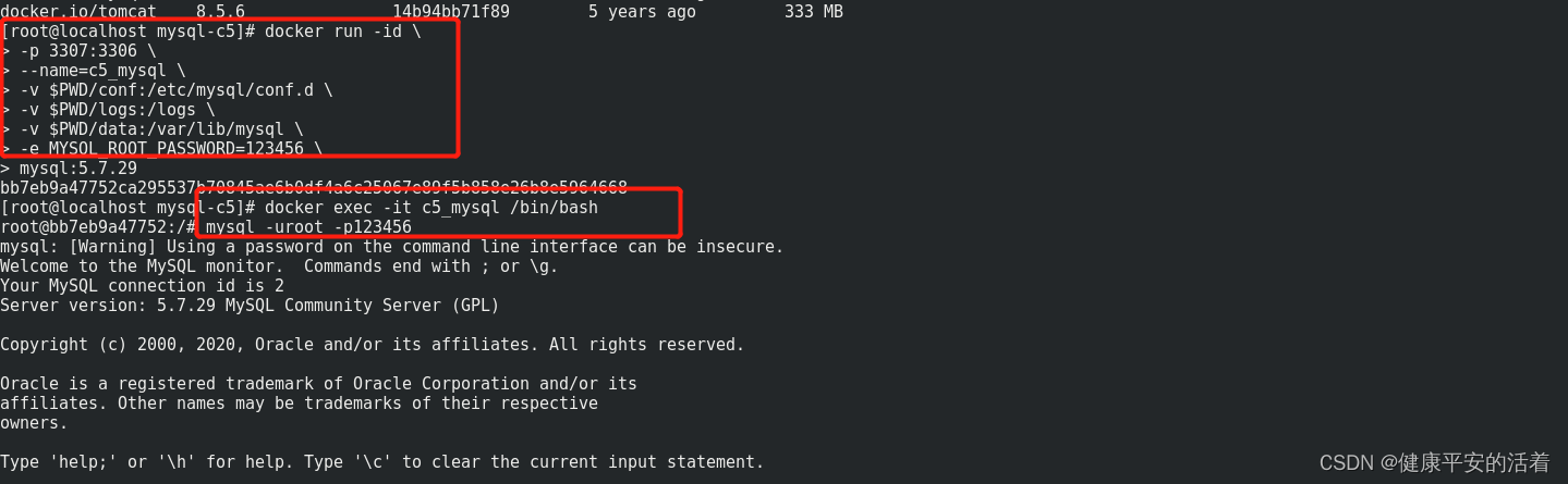 [root@localhost mysql-c5]# docker exec -it c5_mysql /bin/bash