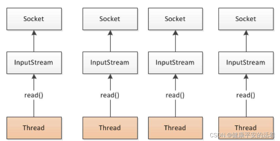 连接建立后,如果当前线程暂时没有数据可读,则线程就阻塞在Read操作上,造成线程资源浪费。