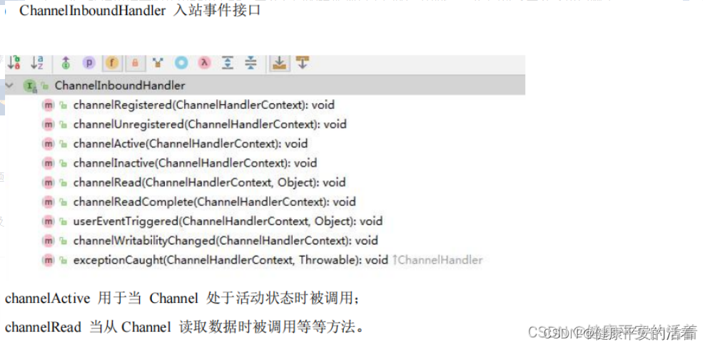 channelhandler处理事件分为出站和入站,两个方向的操作都是不同的,因此,netty定义了两个子接口继承channnelhandler。