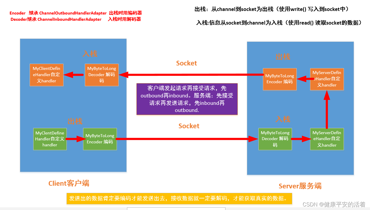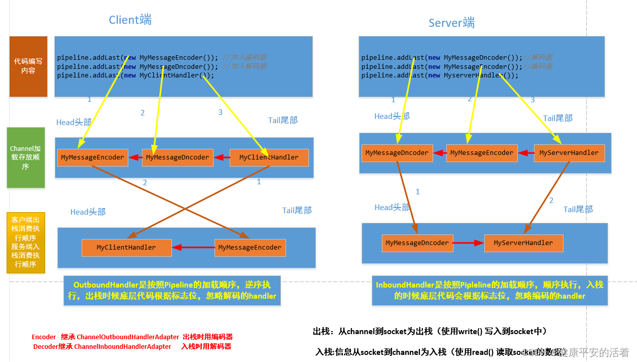 因为出站是从内部向外面进行写操作,从tail开始能够让前面的handler进行处理,防止handler被遗漏,如编码。入站当然就是从head网内部输入,让后面的handler能够处理这些输入的数据。比如解码。