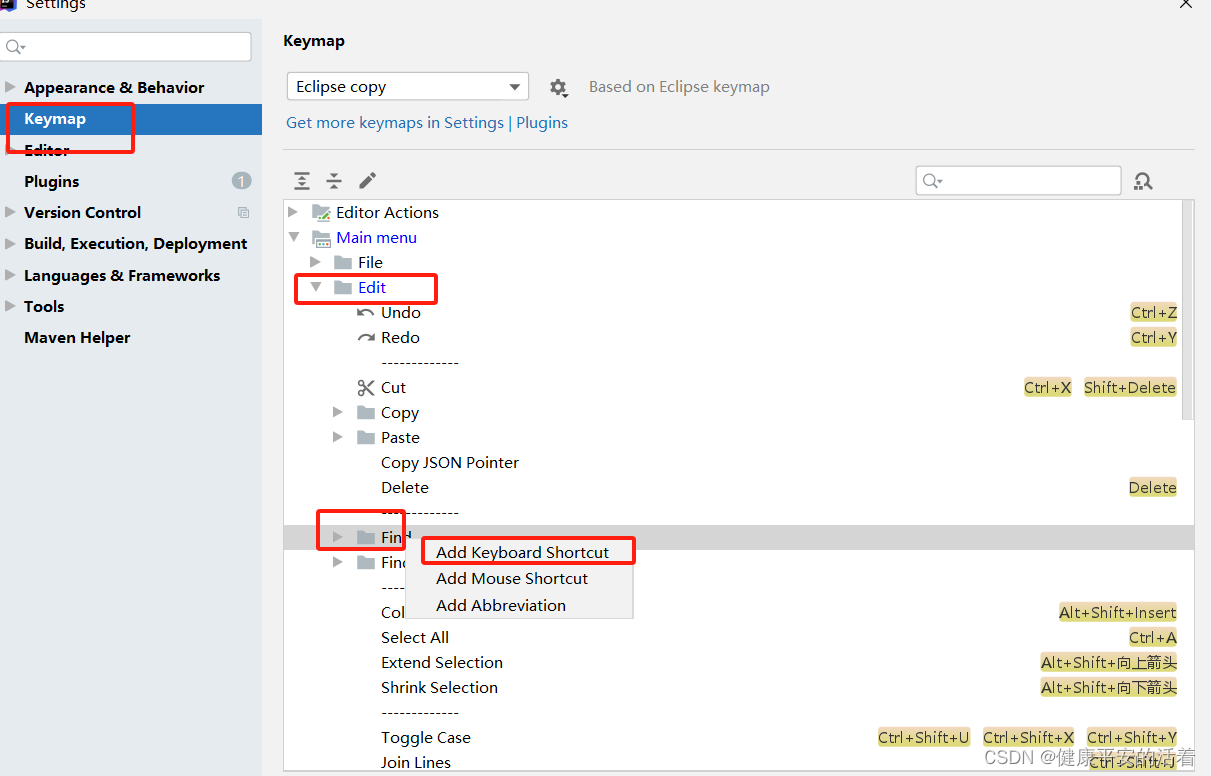 首先将idea的快捷键设置eclipse模式:file--》settings-》keymap