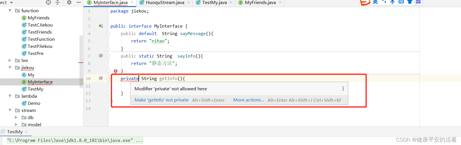 在java8中还不允许这样写私有方法。