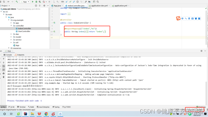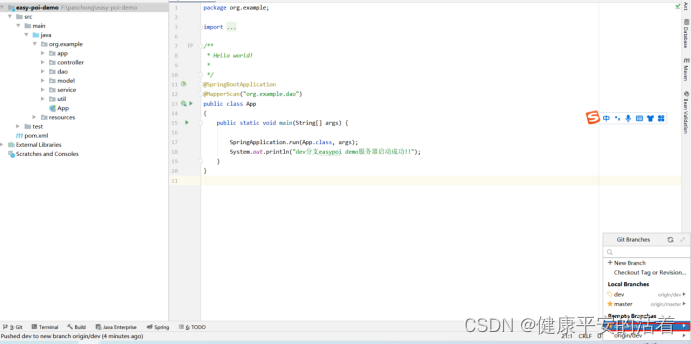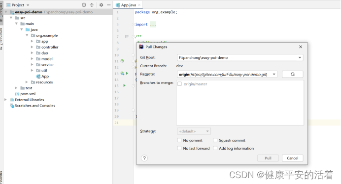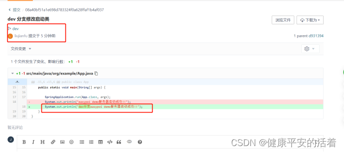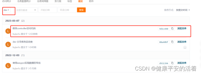 然后执行add,commit,pull,push,提交到远程仓库dev分支。