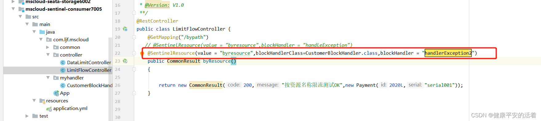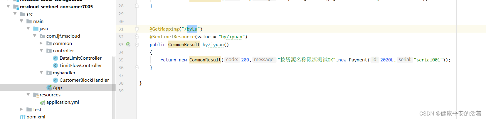 return new CommonResult(200,"按资源名称限流测试OK",new Payment(2020L,"serial001"));