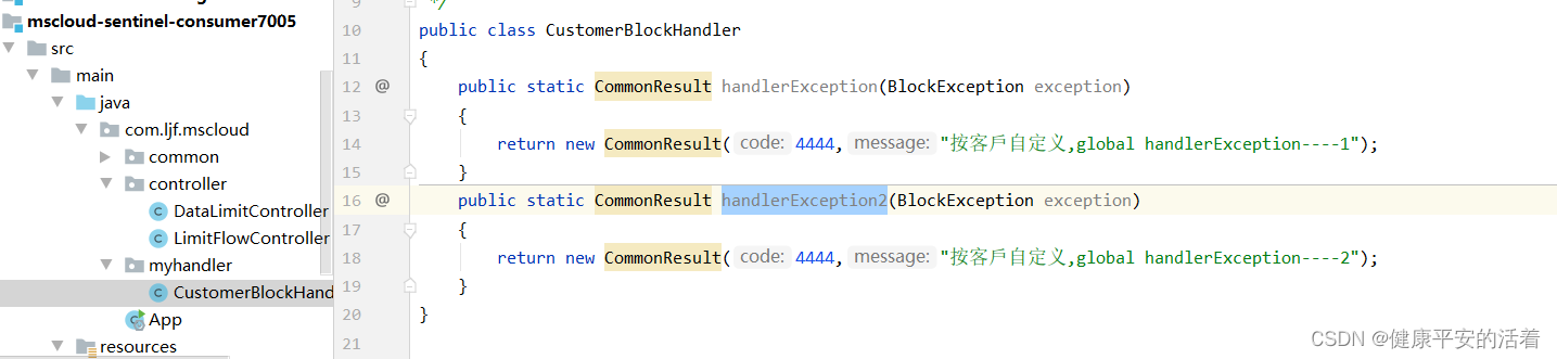 按路径限流 触发后 默认报:Blocked by Sentinel (flow limiting)