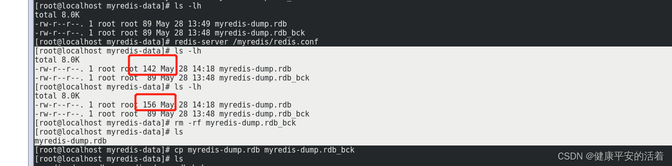 [root@localhost myredis-data]# cp myredis-dump.rdb myredis-dump.rdb_bck