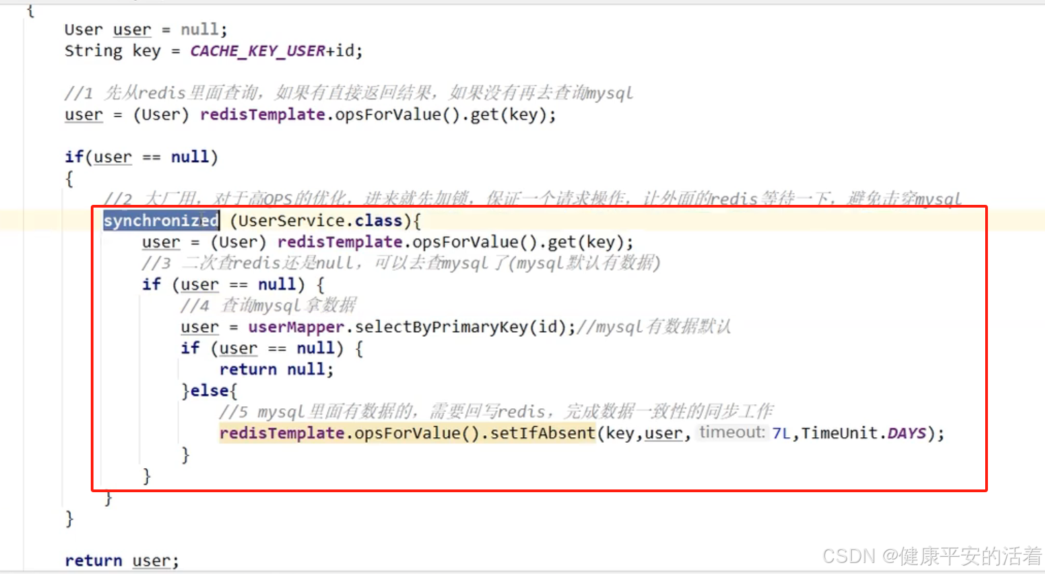 2.如果Redis中没有对应缓存,则需要直接查询数据库,然后存入Redis,最后把数据返回。