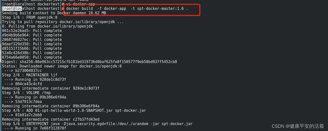 [root@localhost dockertest]# docker build -f docker-app -t spt-docker-master:1.6 .