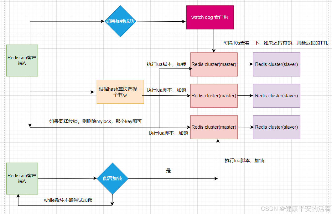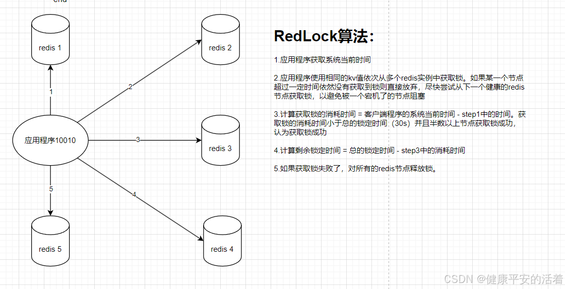 基于客户端的实现,是基于多个独立的Redis Master节点的一种实现(一般为5)。client依次向各个节点申请锁,若能从多数个节点中申请锁成功并满足一些条件限制,那么client就能获取锁成功。它通过独立的N个Master节点,避免了使用主备异步复制协议的缺陷,只要多数Redis的master节点正常就能正常工作,显著提升了分布式锁的安全性、可用性。