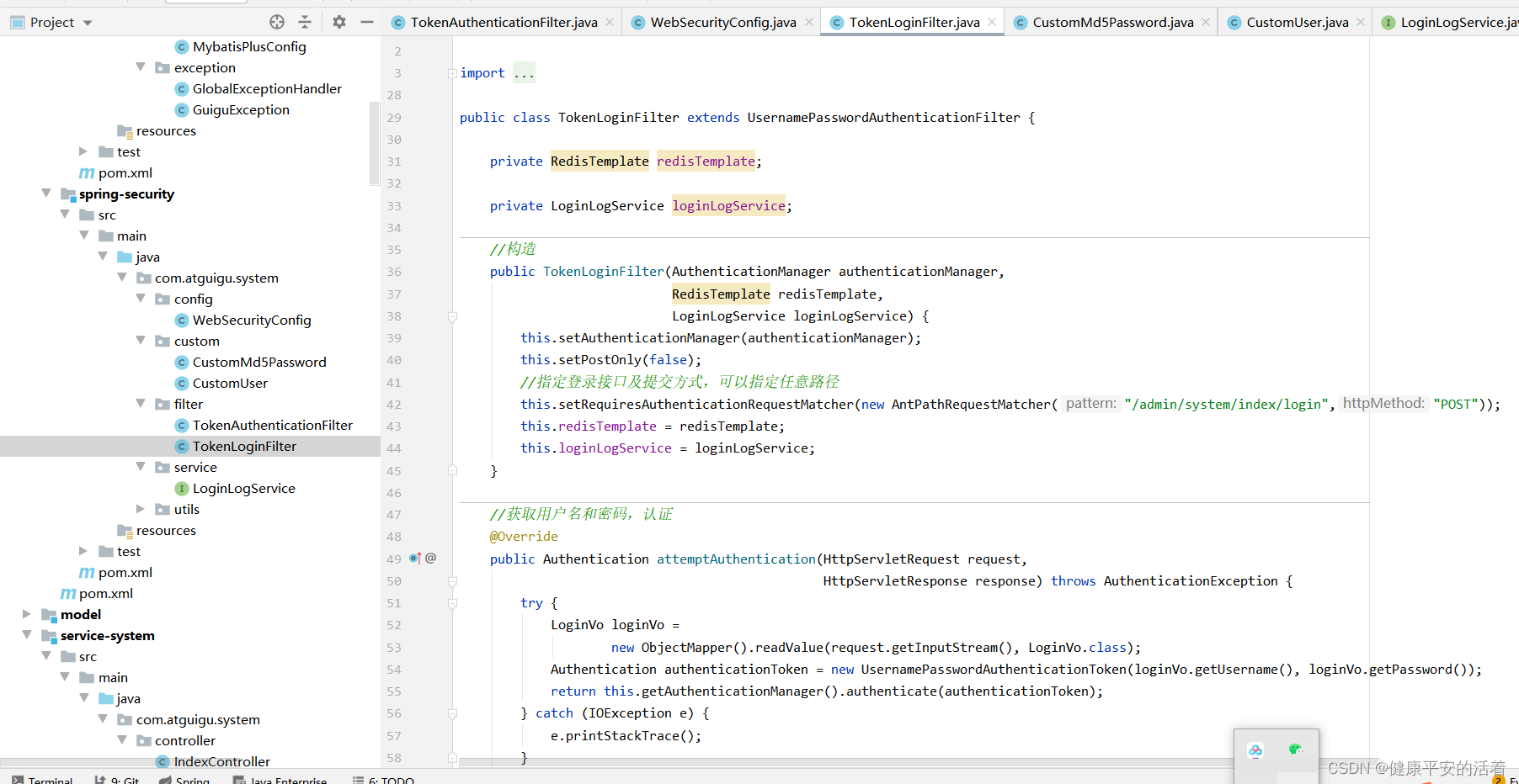 1.先执行TokenAuthenticationFilter (token验证过滤器),