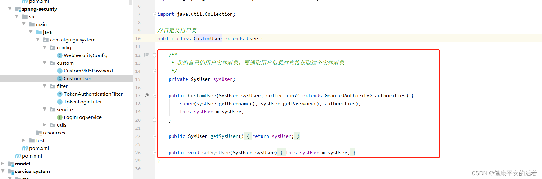 自定义用户类,需要实现springsecurity框架中包含的User类。