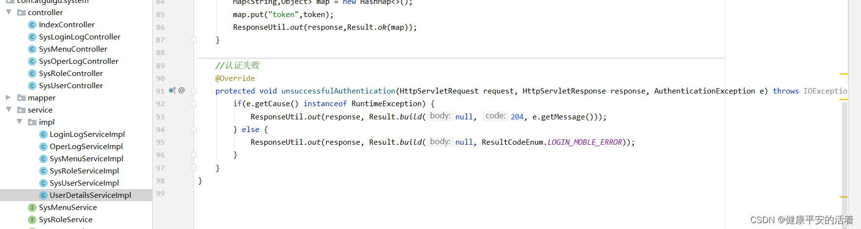 3.2如果验证不合法返回到TokenLoginFilter类中unsuccess方法中进行返回提示验证失败