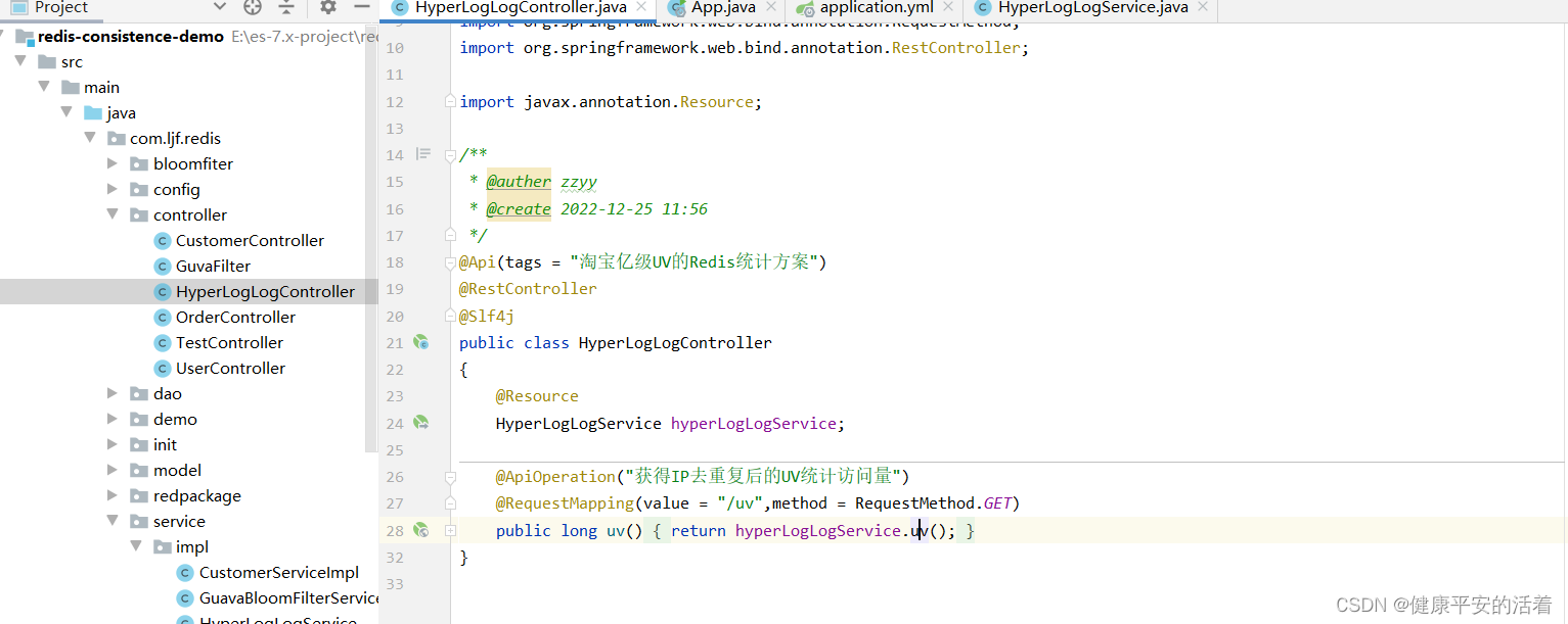@Api(tags = "淘宝亿级UV的Redis统计方案")