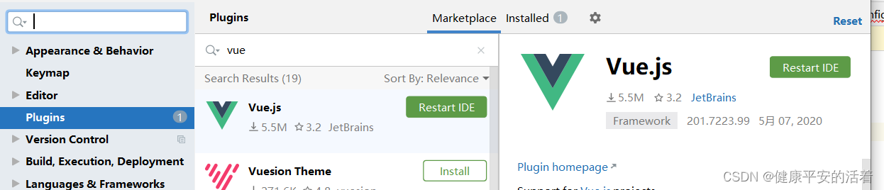 1.在idea中的plugins区域搜索“vue” 开始进行安装