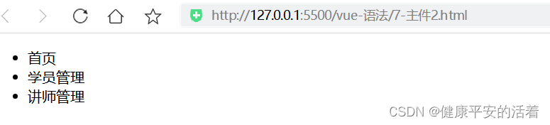 template: '<ul><li>首页</li><li>学员管理</li><li>讲师管理</li></ul>'
