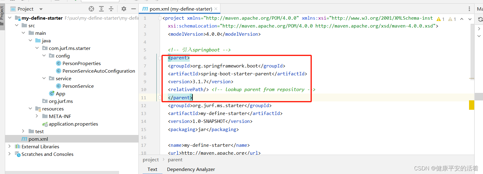 1.工程my-define-starter 采用springboot 3.1.7 作为底座