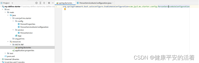 2.my-define-starter工程作为sdk,在resources/meta-inf/ 下的spring.factories文件中添加自动扫描的配置类,