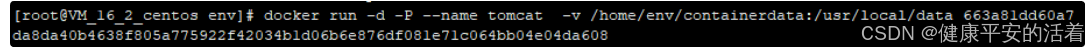 docker run是启动容器命令; -d代表后台运行; -P代表端口自动帮我们绑定; --name tomcat代表将启动的容器命名为tomcat; -v标记在容器中设置了一个挂载点 /usr/local/data(就是容器中的一个目录),并将主机上的 /home/env/containerdata 目录中的内容关联到/usr/local/data下。 |