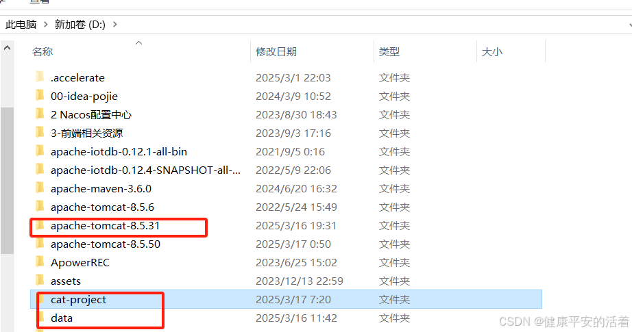 1.在和tomcat软件包同样的根目录下,新建:data/appdatas/cat