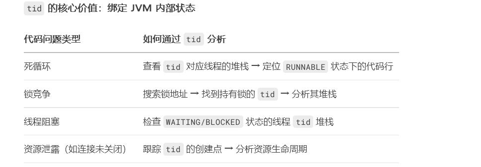 tid → JVM 内部状态分析(锁/状态/调用栈)