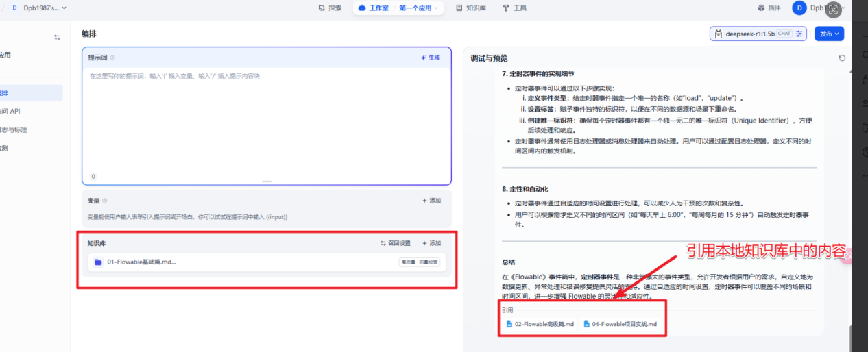 2.应用页面选择相应知识库,做为应用上下文,进行模型调用,返回相关信息。