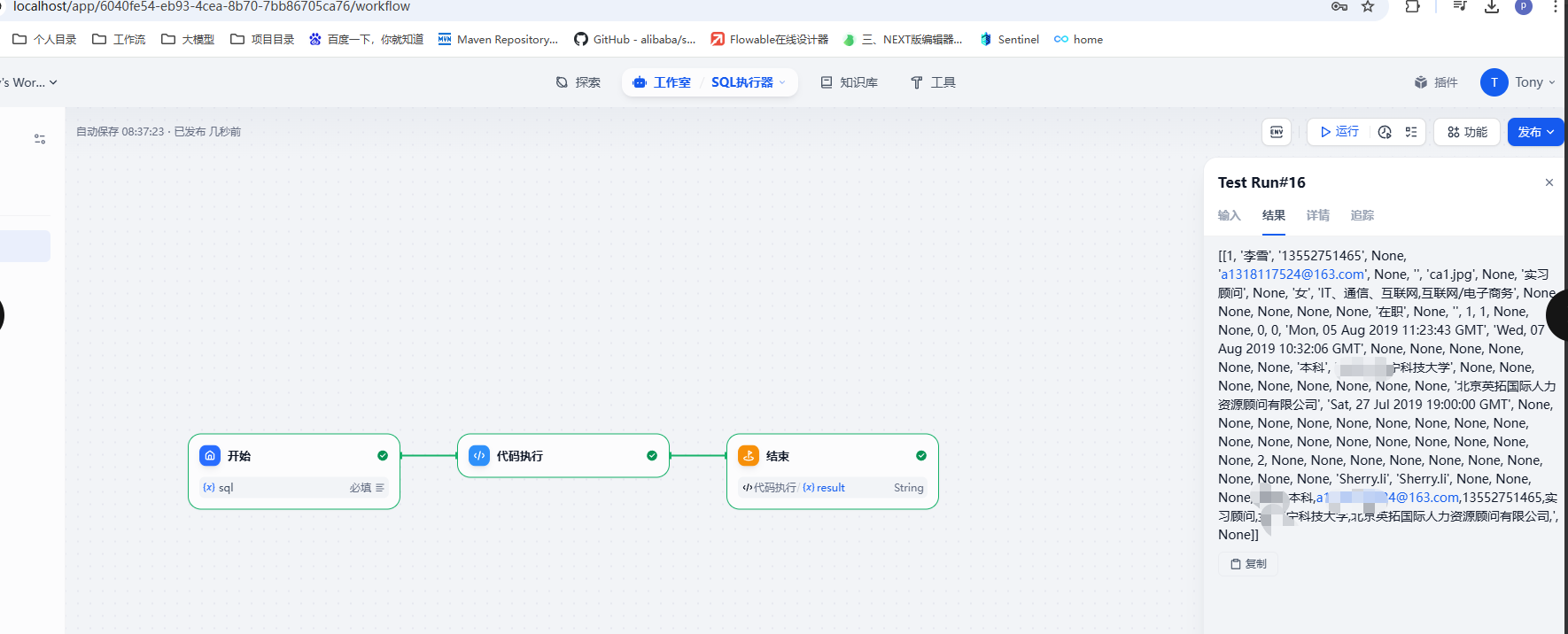 我们可以通过工作流来创建一个SQL语句的执行器,也就是我们可以输入相关的SQL语句然后通过工作流来连接数据库执行对应的SQL代码,