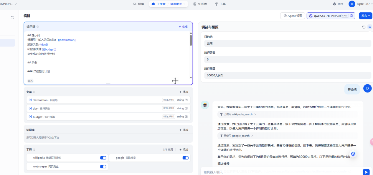 我可以在工作流案例中结合聊天大模型来实现翻译工具的功能,具体的设计如下: