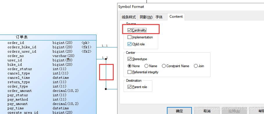 1.第一步:右键单击关系线,设置content为cardinality
