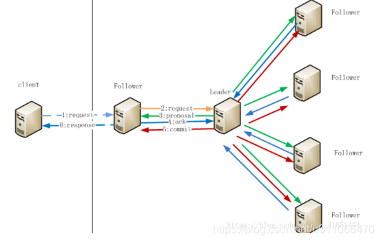 2.Follwer把请求发送给Leader