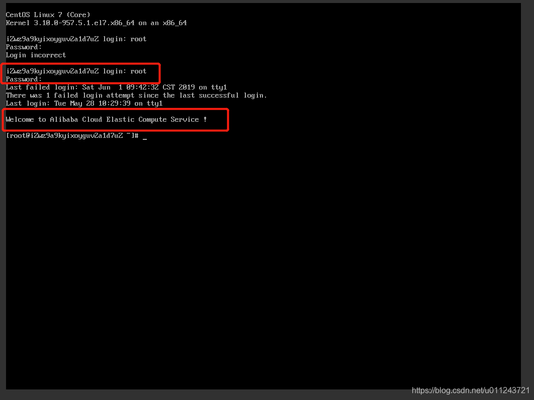 - 登陆后台后会先让你输入帐号以及密码,登陆成功后提示 Welcome to Alibaba Cloud Elastic Compute Service !