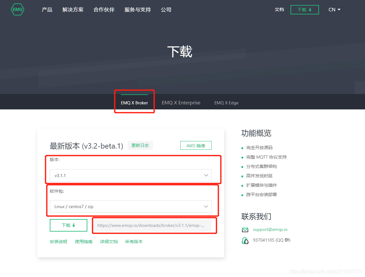 然后进行MQTT的下载:https://www.emqx.io/cn/downloads#broker,复制下载连接