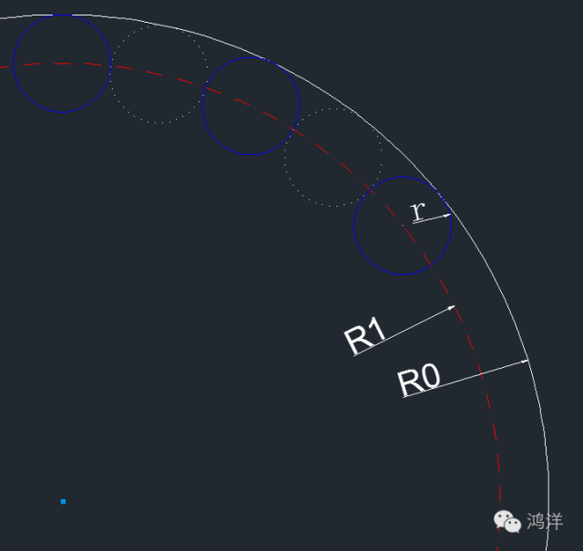 其中R0控件大小(min(getWidth(), getHeight()))的一半;R1就是圆点的圆心组成的圆轨迹的半径;r是圆点半径;