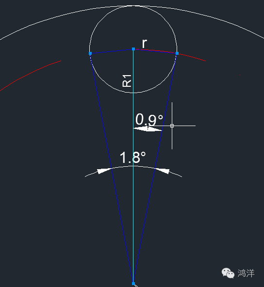 另外200个连续圆点在以R1为半径的圆上,圆点与圆点都是外切关系。所以每个圆点所占的角度就是360°/200 = 1.8°