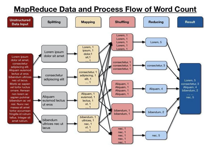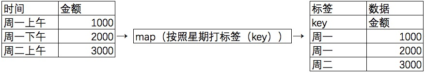 如果我们的任务是数清楚一袋子水果糖里,不同口味的糖有多少块。那么Map就是把糖分类,比如苹果味的放在第一个盘子里,草莓味的放在第二个盘子里;而Reduce就是执行的具体的计算任务,比如一个人数第一个盘子里的苹果味糖有几块,另一个人数第二个盘子里的草莓味糖有几块。最后通过这两个阶段来完成最开始的目标。