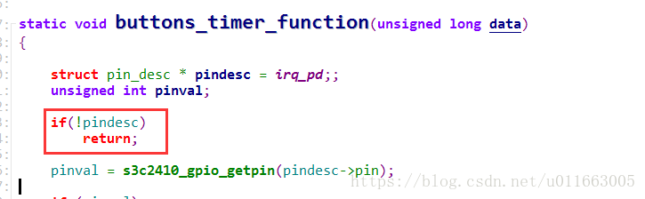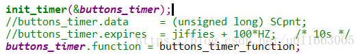 另外还有一个问题需要去考虑,就是在入口函数中没有设置定时器的超时时间,也就是说开始的超时时间就是0,那么通过add_timer函数将定时器放进内核以后,一旦进入系统时钟的中断,jiffies这个参数的值就会大于0,就会随即调用按键定时器函数buttons_timer_function,但是这时候并没有按键中断产生。