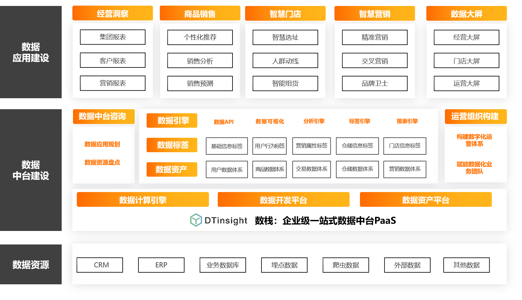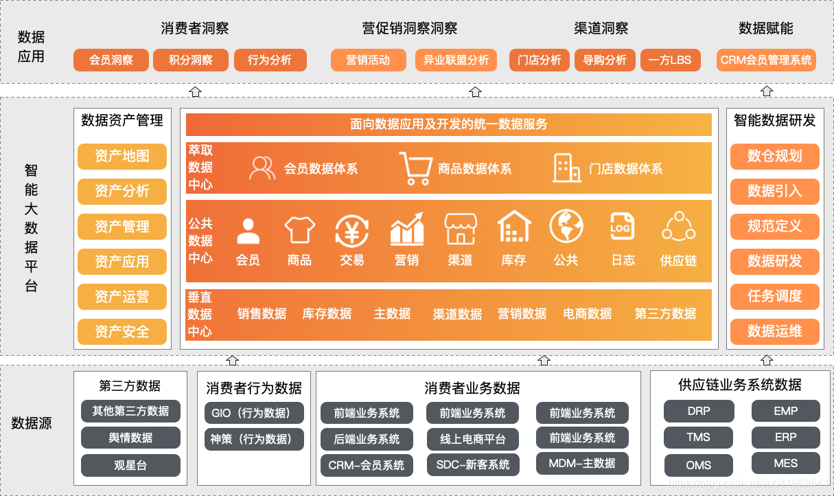 数据中台致力于基于“互联网+”时代的数据价值思考,帮助零售企业构建“全”、“统”、“通”的大数据体系,搭建全域数据共享能力中心,从而为上层的数据应用提供数据支持,助力企业数字化,提升企业竞争力。