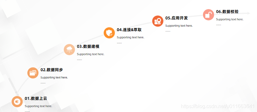 数据中台的整体建设包括数据上云、数据同步、数据建模、连接和萃取、数据应用开发和数据校验6个主要阶段(或步骤),其中2、3、4是数据中台核心的建设内容,数据上云是基础,数据校验是最后交付质量的保障。