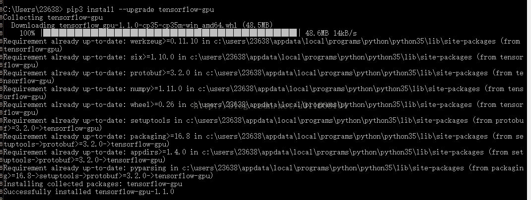 挺简单的,直接根据tensorflow官网介绍安装的:https://www.tensorflow.org/install/install_windows