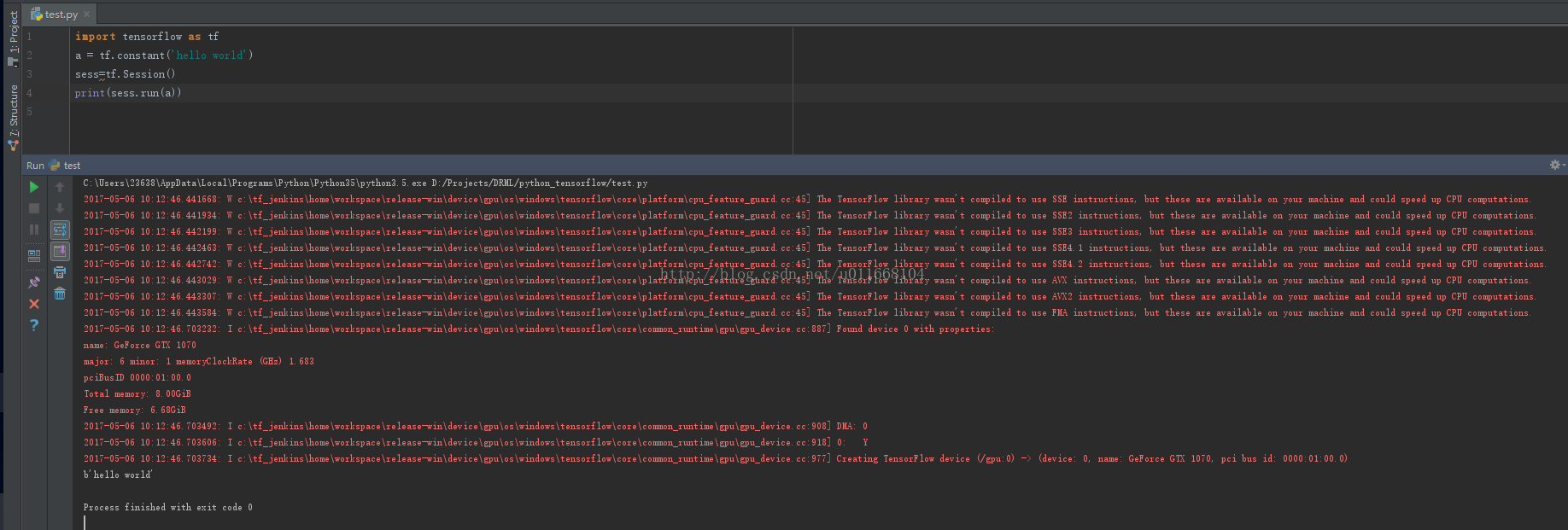 我的环境:win10-64bit, CUDA8.0. 已有python2.7(要解决多版本冲突问题,tensorflow只支持python3.5.x)