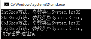 方法是合并了,但是现在存在什么样的问题?出现了装箱拆箱,严重影响性能。而且不够安全,因为如果当我把代码进行如下修改时,会发生什么 public void ObjShow(object obj) { //Console.WriteLine(string.Format("ObjShow方法,参数类型{0}", obj.GetType())); Console.WriteLine(string.Format("ObjShow方法,参数类型{0},参数值{1}", obj.GetType(),Convert.ToInt32(obj))); } 调用代码:_MethodTest.ObjShow("a"); 编译时不会报错,但是运行时就报错了。也就是说通过object来作为参数传递,其实是存在严重的安全隐患的。 那么有没有什么办法来解决这两个问题呢?C#2.0泛型的出现正是基于这样的需求。 public void GenericsShow<T>(T t) { Console.WriteLine(string.Format("GenericsShow方法,参数类型{0}", t.GetType())); } |