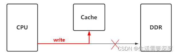 当CPU执行store指令并在cache命中时,我们只更新cache中的数据。并且每个cache line中会有一个bit位记录数据是否被修改过,称之为dirty bit(翻翻前面的图片,cache line旁边有一个D就是dirty bit)。我们会将dirty bit置位。主存中的数据只会在cache line被替换或者显示clean操作时更新。因此,主存中的数据可能是未修改的数据,而修改的数据躺在cache line中。